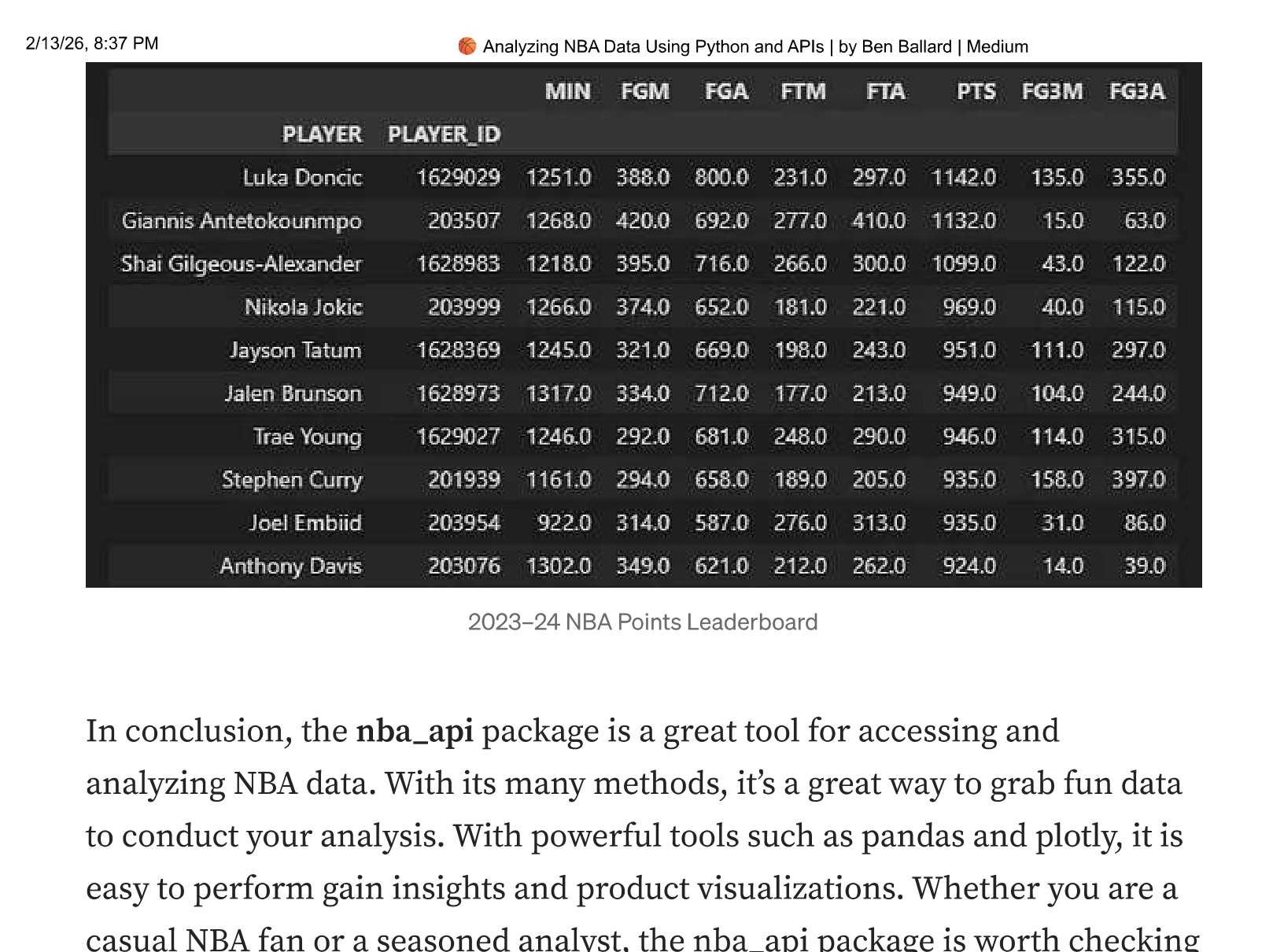 print(f"An error occurred: {e}")Analyzing NBA Data Using Python and APIs